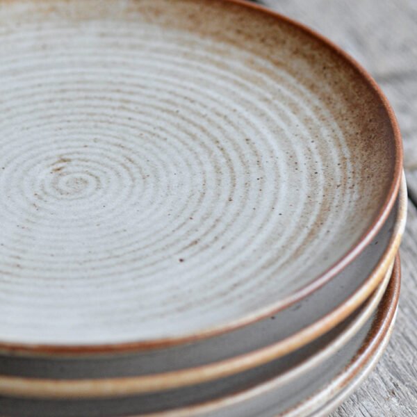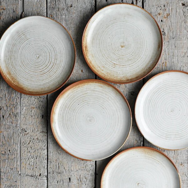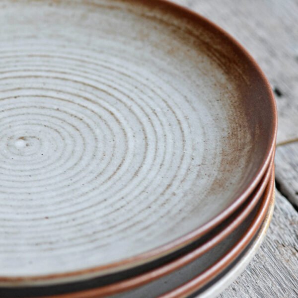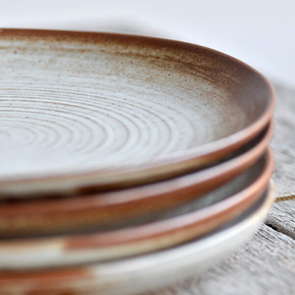 This medium dinner plate boasts a warm, earthy glaze that highlights its handcrafted origins. With a classic coupe shape and the potter’s signature ringed texture, it’s both functional and beautiful. The rich colour and artisanal design make it a stunning centrepiece for any table, ideal for serving main courses with rustic sophistication.