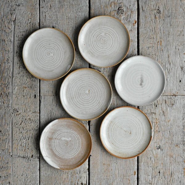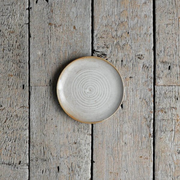 This small ceramic side plate is a representation of true artisanal craft. Designed with a shallow profile and gently curved edges, every single plate owns a unique combination of marks and tone, that reminds you of its handmade origins. Perfect for small bites and treats.