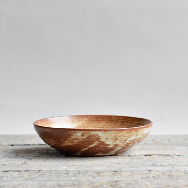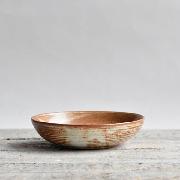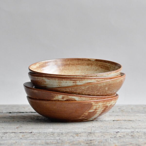 The small Artisan Pasta Bowl in Toast features a shallow profile and gently tapered sides, perfect for serving smaller portions of pasta or meals. The hand-thrown design ensures each piece is unique, while the warm rusty glaze brings a natural, earthy feel to your dining experience. Every bowl will have a unique mix of colour making it a true one-of-a-kind.