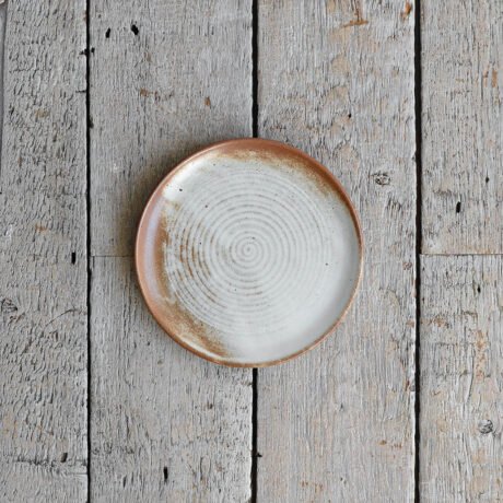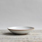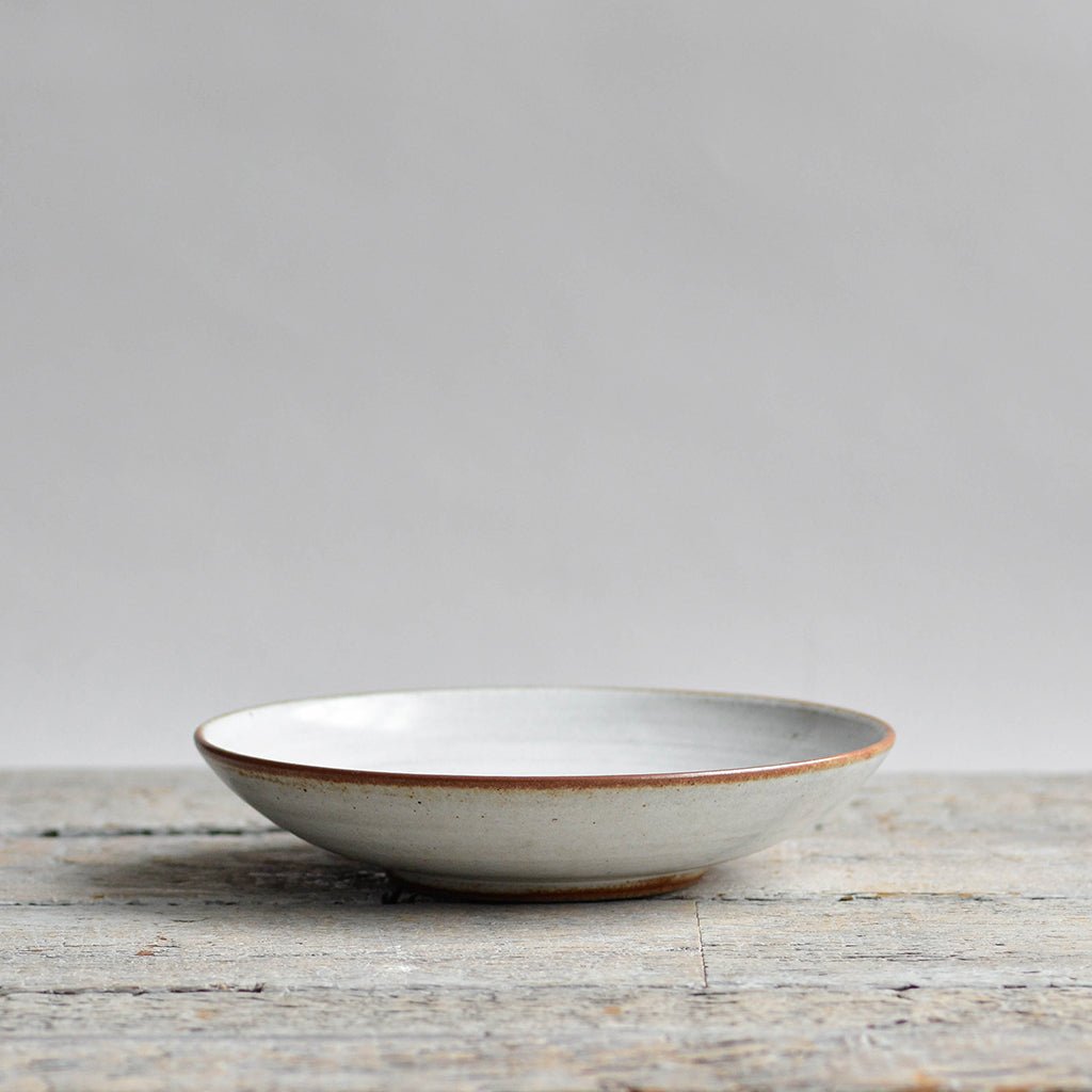 The small Artisan Rustic Dish offers a traditional, elegant design with gently curved sides that taper to a small pedestal base, elevating it slightly off the table. Hand-thrown with a shallow profile, this artisanal bowl is perfect for serving single portions of pasta, salads, or desserts. This is the lighter glaze version, still with a completely unique tonal mix on every bowl.