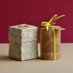 To complete the set, we also include a miniature spoon made from cinnamon bark and a natural palm leaf gift box.