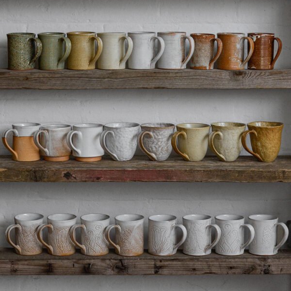 Inspired by the elegant curves of tulips, this hand-thrown tea mug has a narrow base that gently widens. Finished with a matt white glaze, which reacts with the iron rich clay to create this unique speckled Sand toneI. Its graceful shape and generous size make it the perfect mug for enjoying a cozy cup of tea or coffee.