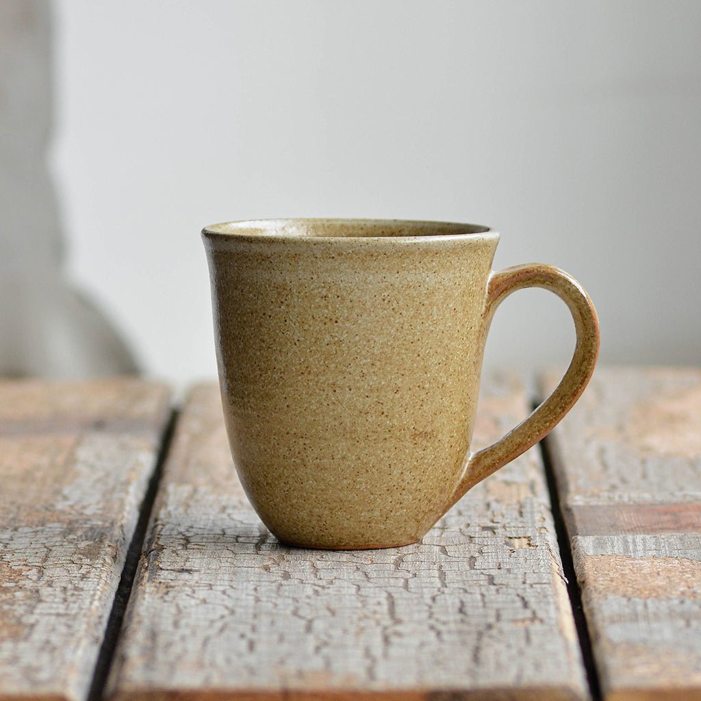 Inspired by the elegant curves of tulips, this hand-thrown tea mug has a narrow base that gently widens. Finished with a matt white glaze which reacts with the iron rich clay to create this unique speckled Sand tone.Its graceful shape and generous size make it the perfect mug for enjoying a cozy cup of tea or coffee.